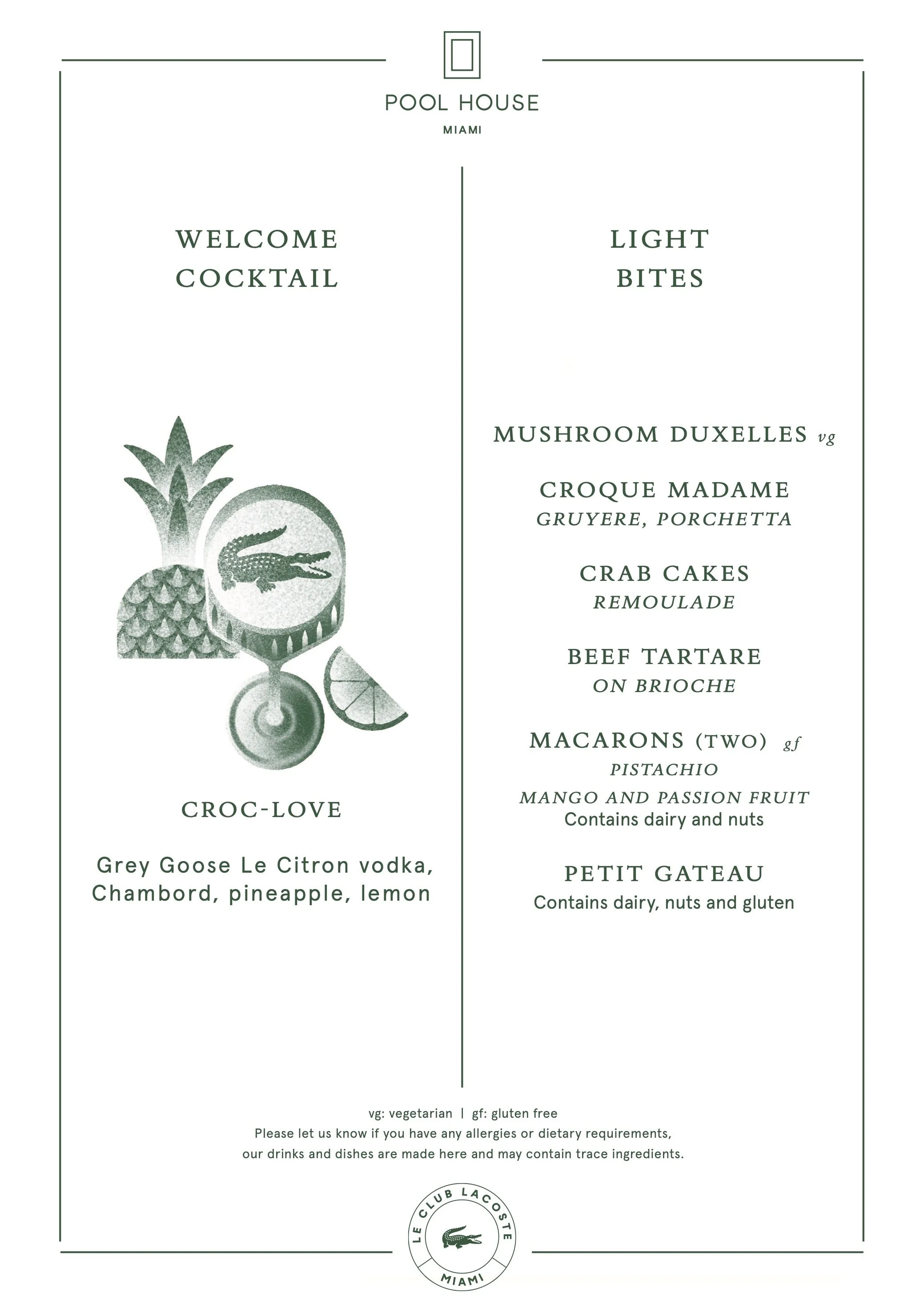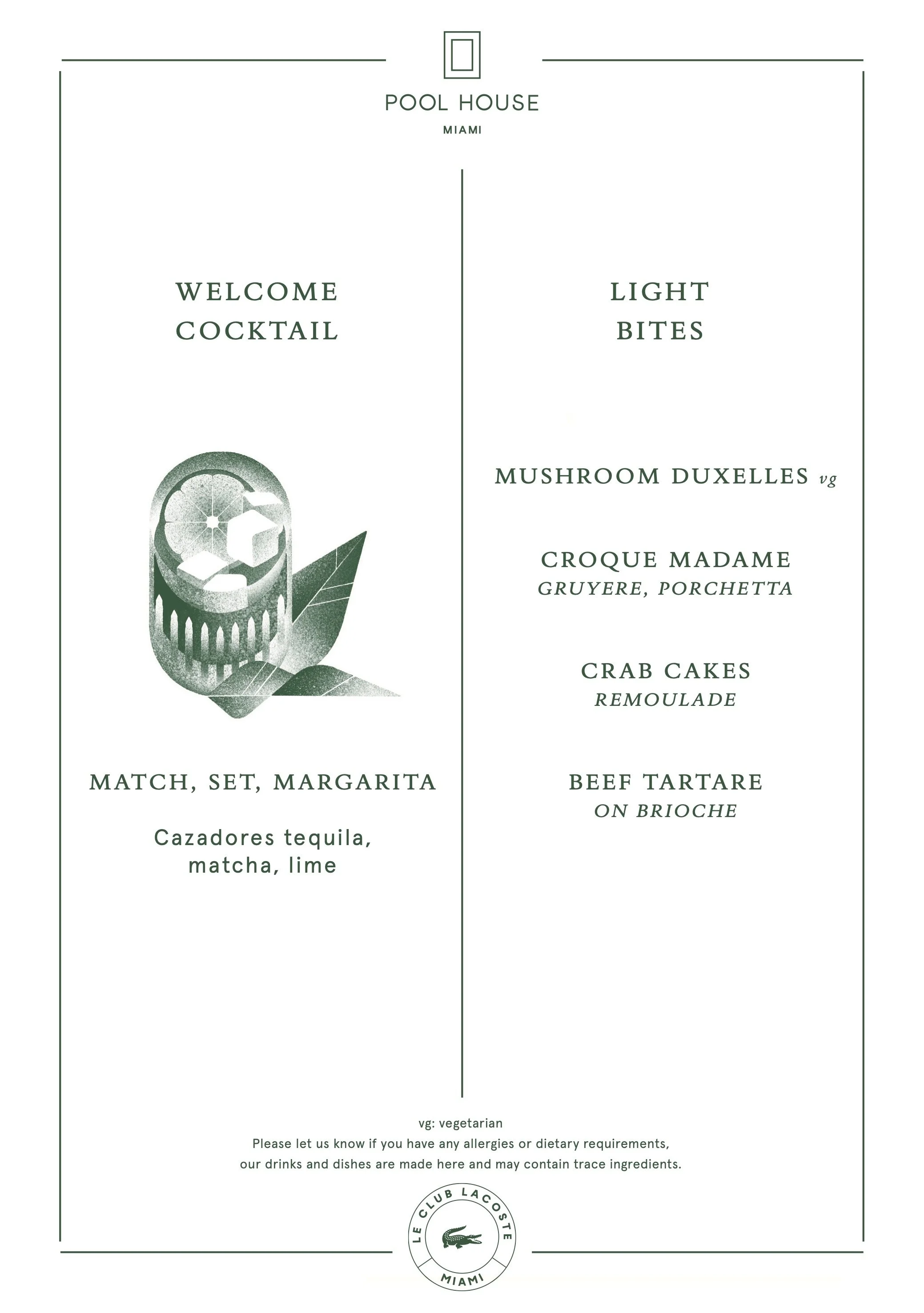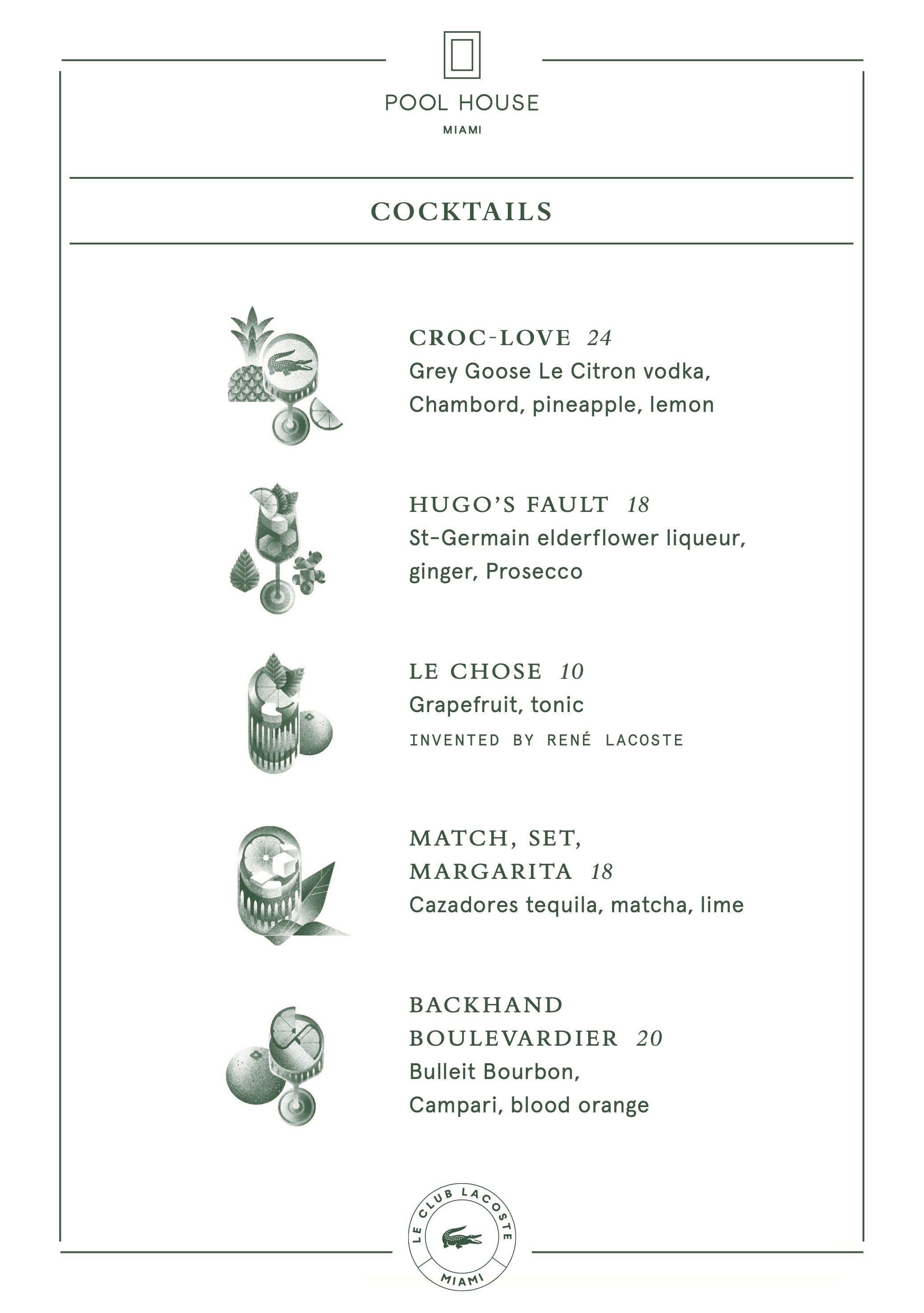 Series of spot illustration for a cocktail menu commissioned by Soho House for a tennis event in collaboration with Lacoste.